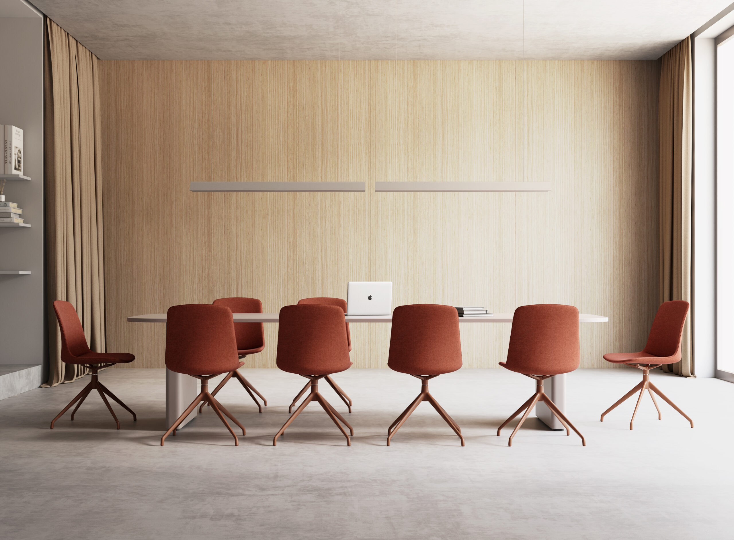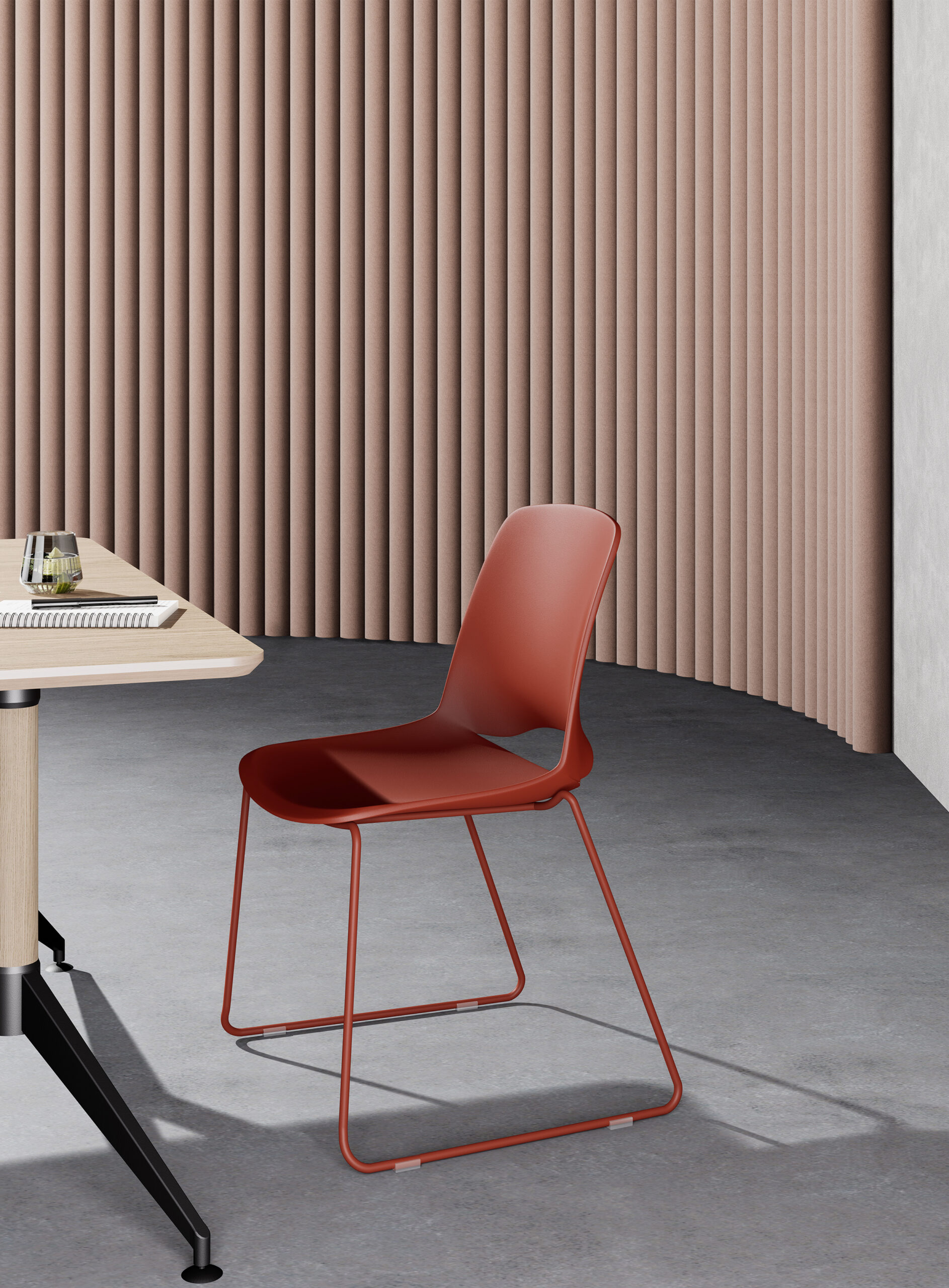 Dossier et assise en polypropylène, avec assise rembourrée pour plus de confort. Assise en mousse moulée haute densité. Structure avec cadre en tube d’acier peint.