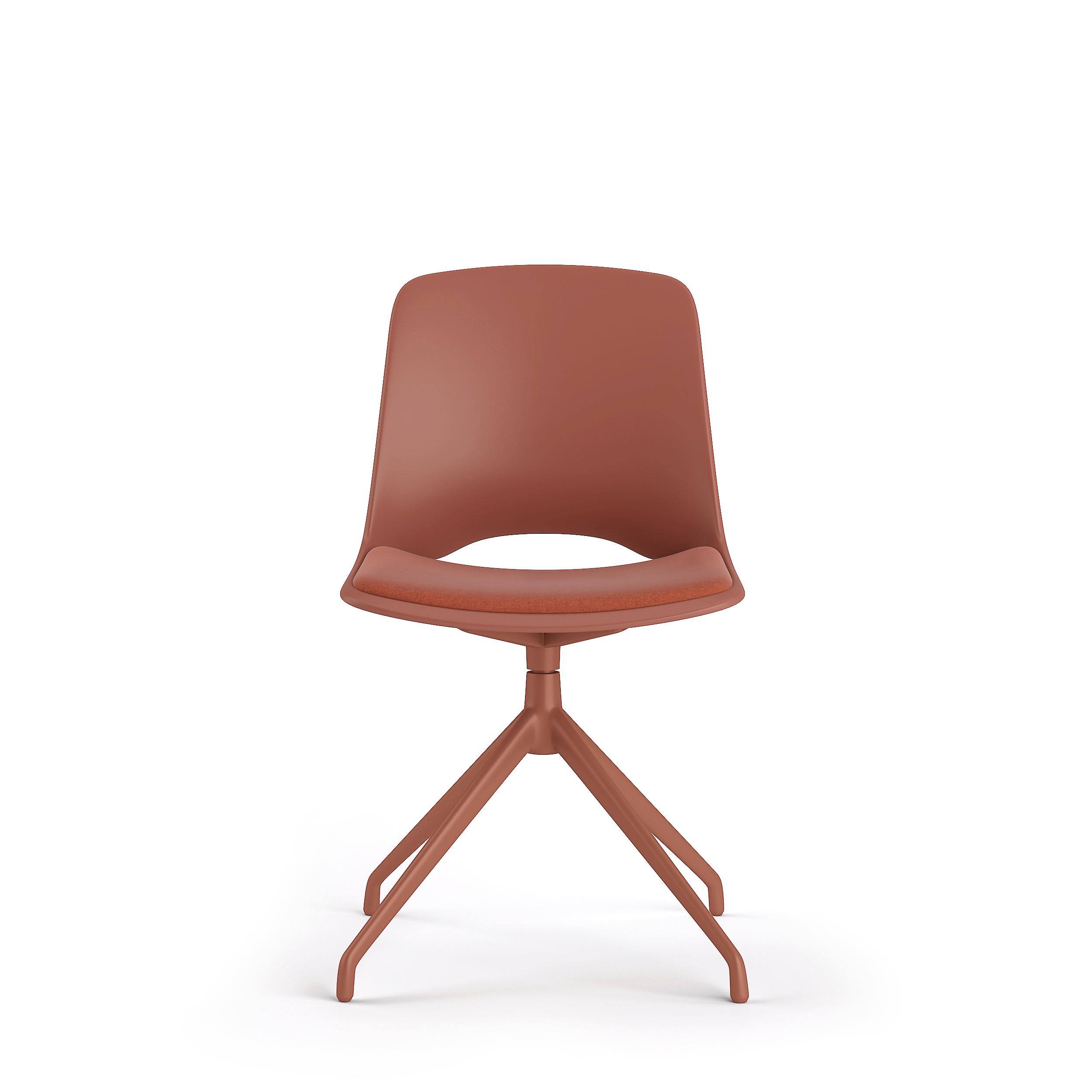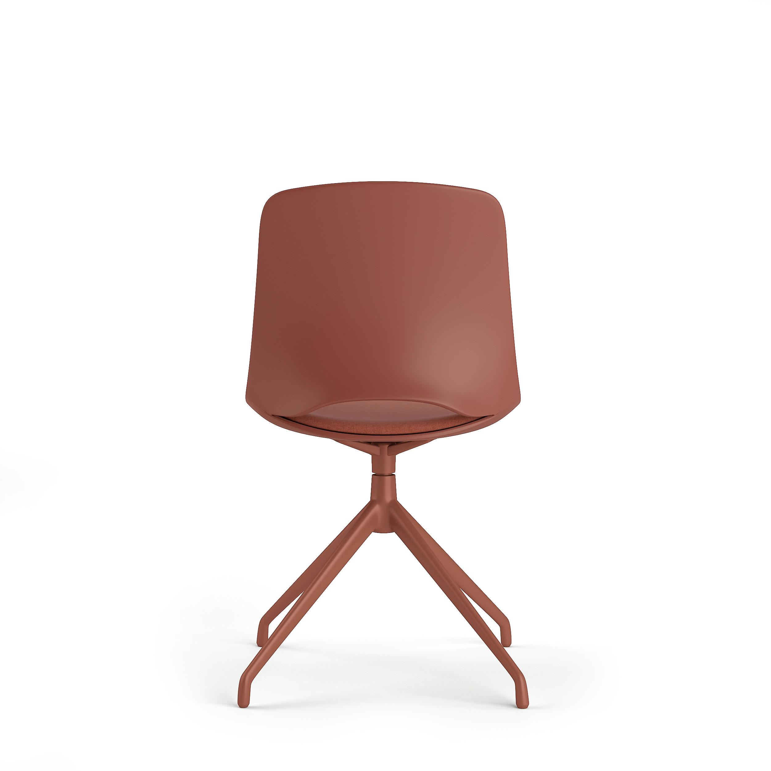 Dossier et assise en polypropylène, avec assise rembourrée. Mousse d’assise moulée haute densité, garantissant maintien et durabilité. Base avec 4 piètements en métal peint.