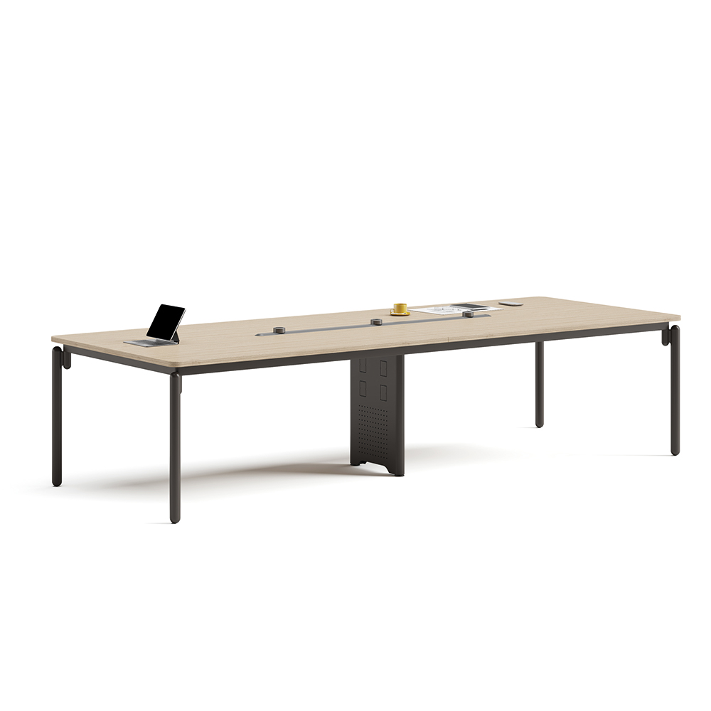 Table de réunion avec plateau en MFC et structure métallique. Alliant solidité et design contemporain, elle s’intègre parfaitement dans les espaces de direction et de collaboration.