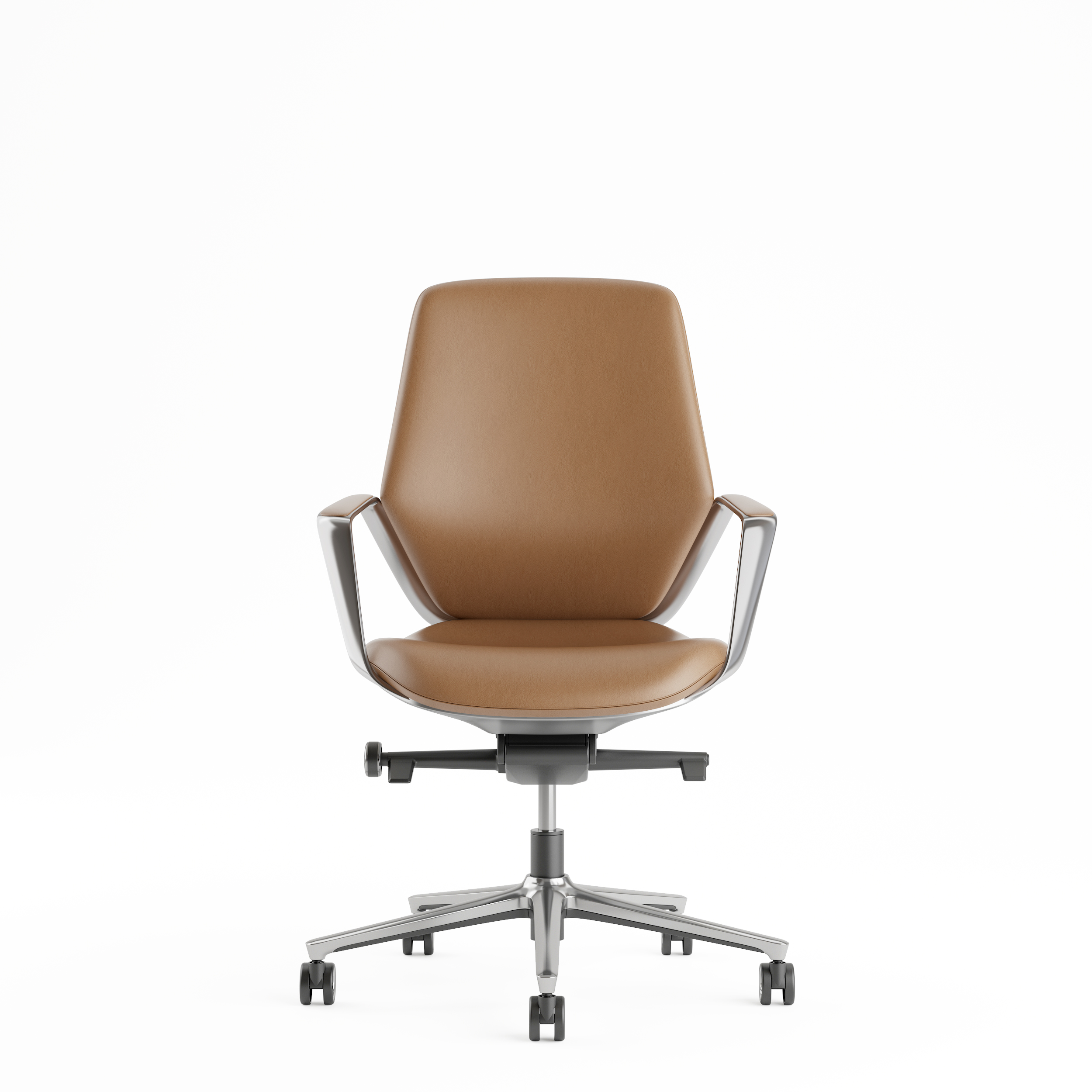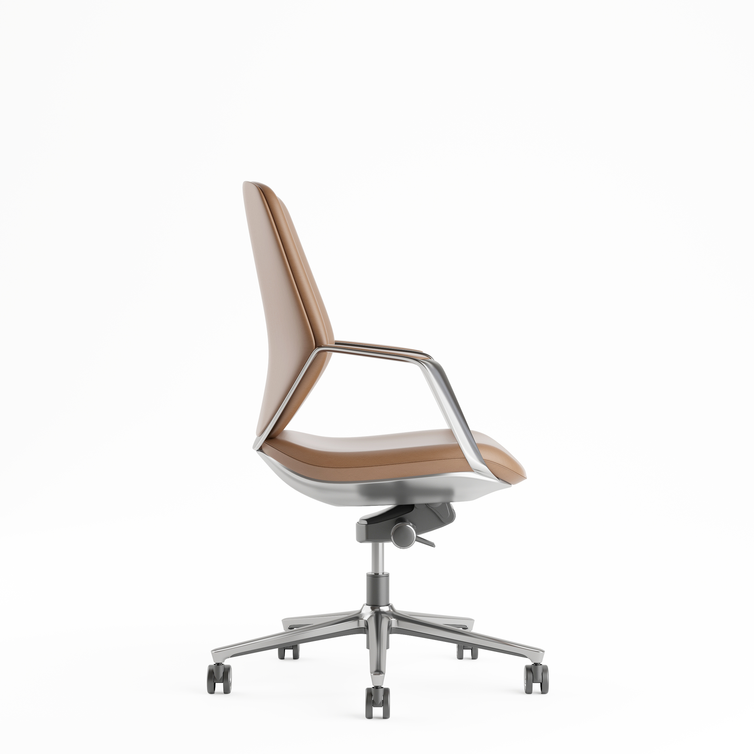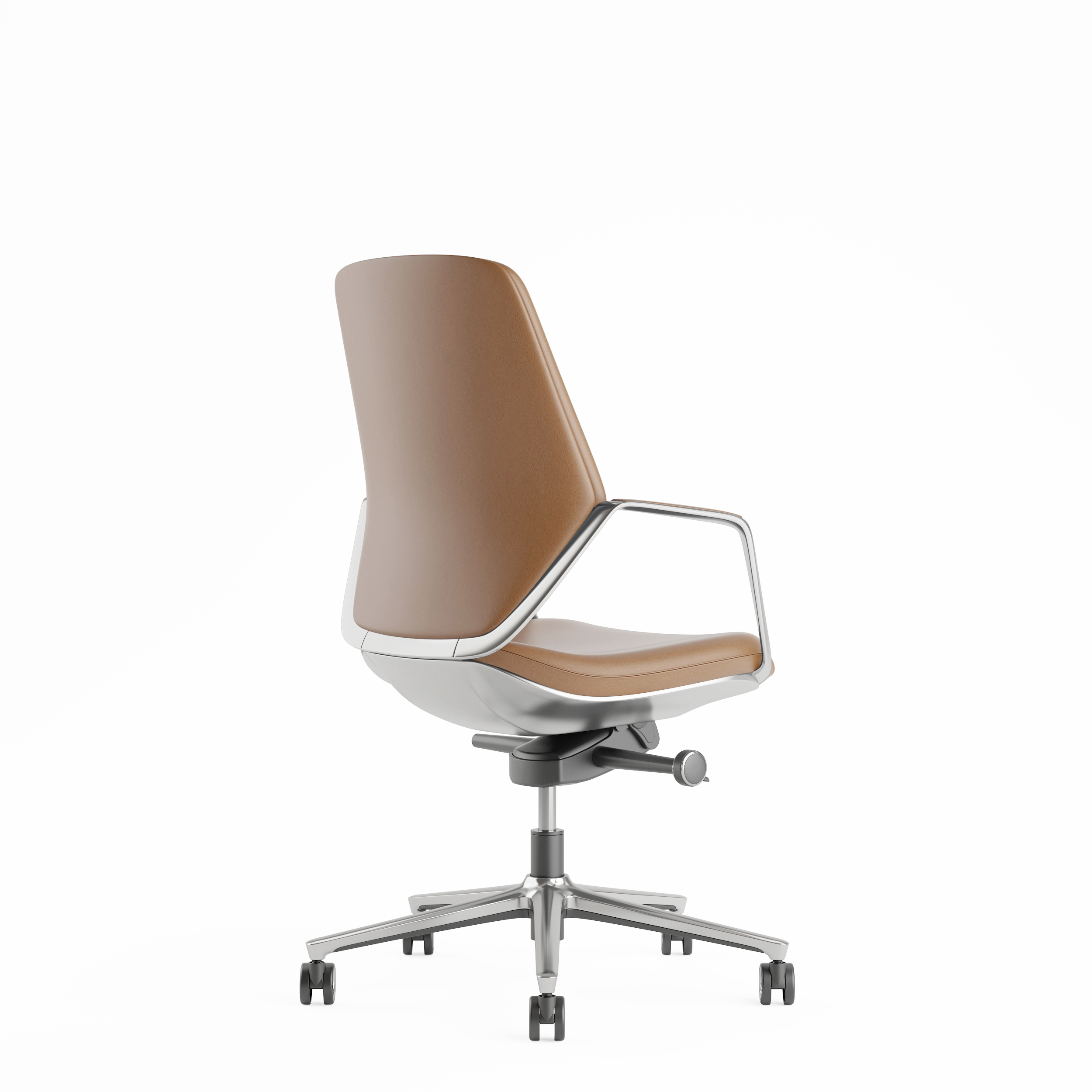 Revêtu d’un cuir italien de qualité supérieure. Son assise et son dossier en mousse moulée haute densité tandis que les accoudoirs et la base en aluminium poli de 350 mm offrent stabilité et allure contemporaine. Équipé d’un vérin à gaz SHS classe 4 et d’un mécanisme synchrone à quatre positions de verrouillage.