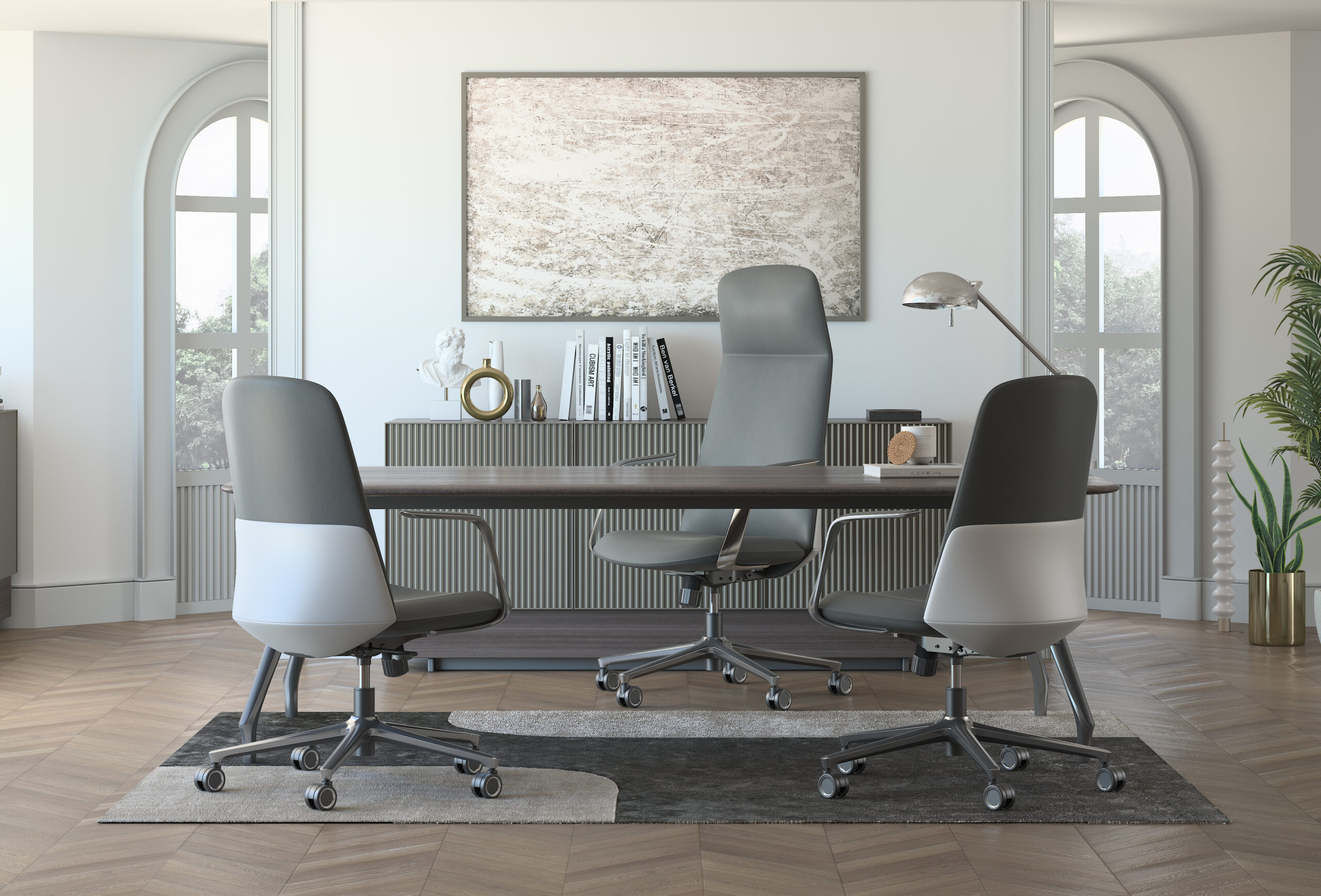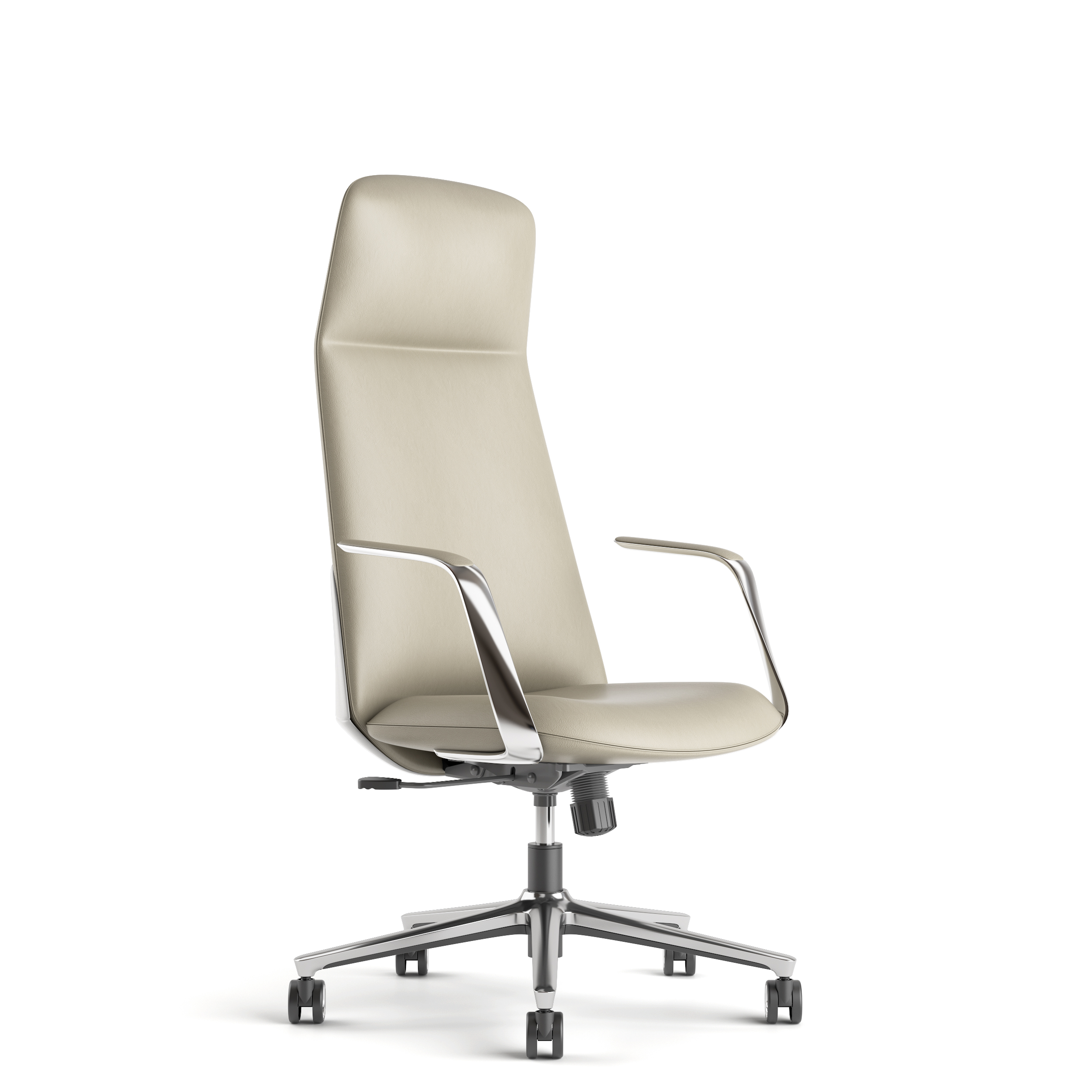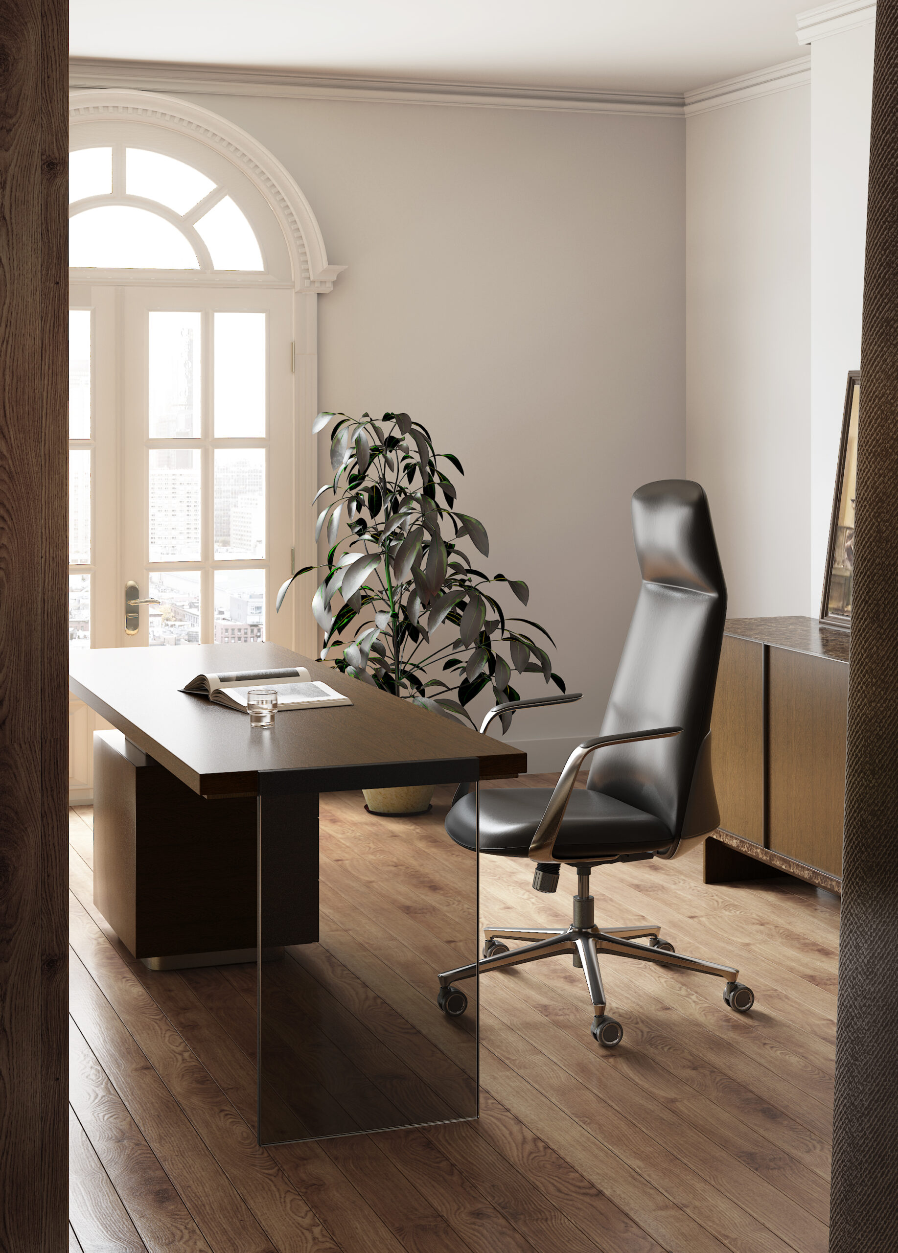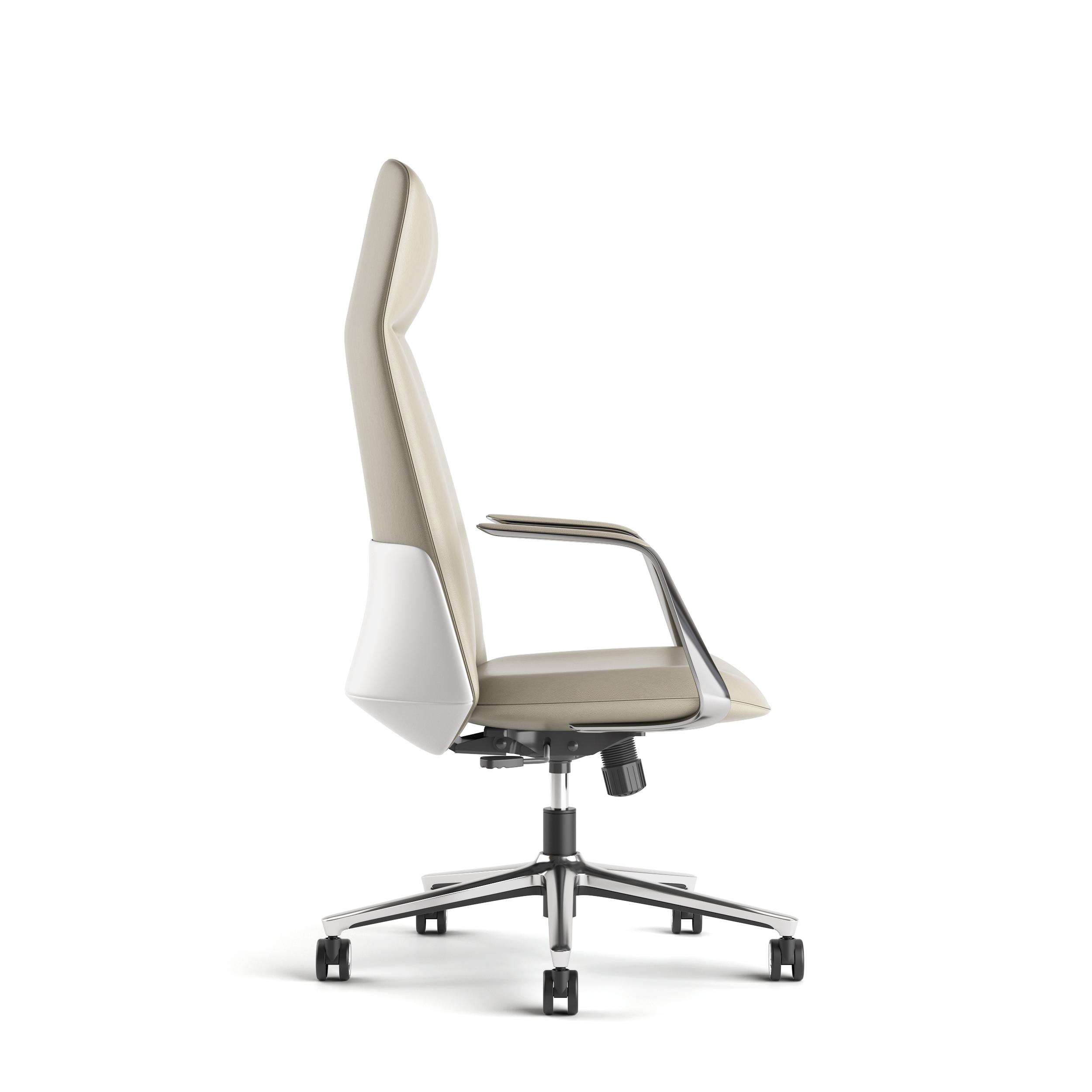 Revêtu d’un cuir italien de qualité supérieure offrant une finition luxueuse et un confort supérieur. Assise et dossier en mousse moulée haute densité. Accoudoirs en aluminium poli, élégants et résistants, pour une touche de raffinement et une base en aluminium de 350 mm. Equipé d’un vérin à gaz SHS noir classe 3 et d’un mécanisme basculant Butterfly avec 3 positions de verrouillage, offrant une liberté de mouvement et un confort d’utilisation optimal.