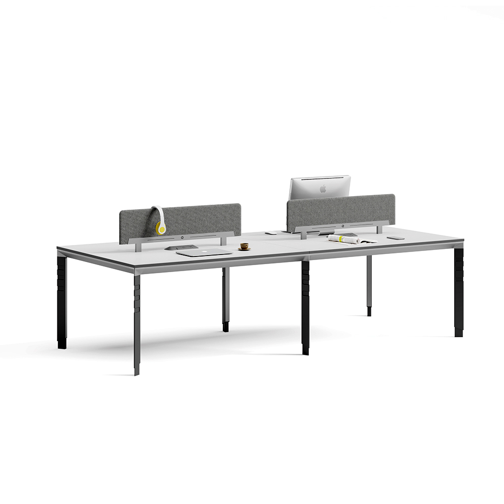 Bureau open space avec séparateur : Bureau partagé doté d’un séparateur à finition tissu, d’une structure en aluminium et d’un plateau en MFC, favorisant confort et productivité.